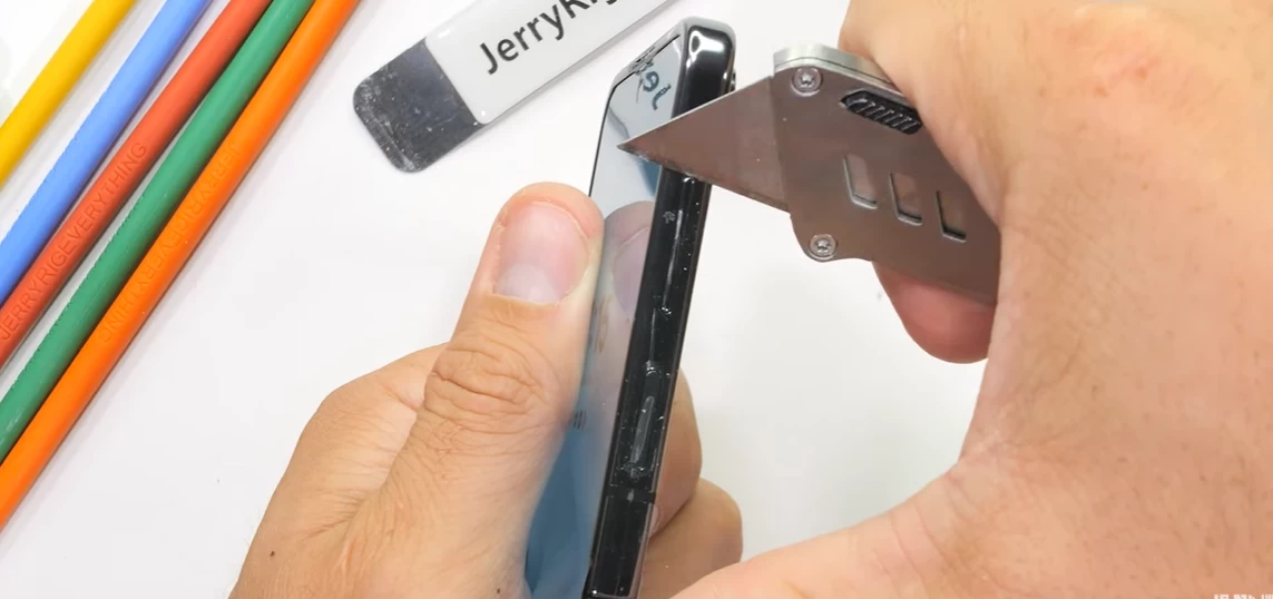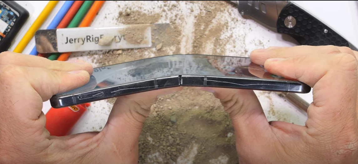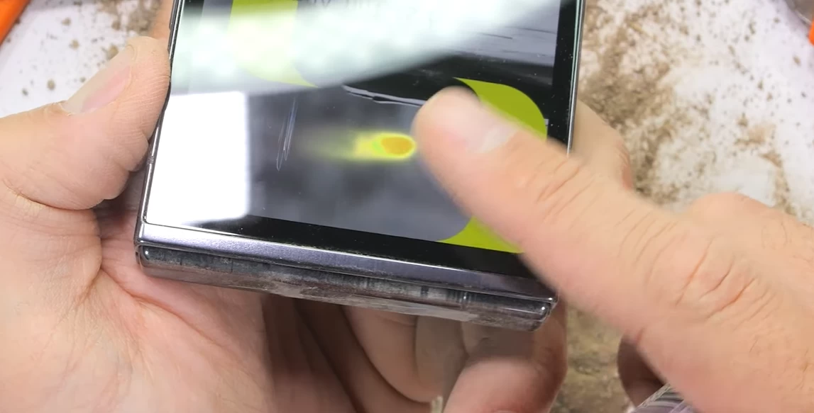 Шарнир, который позволяет смартфону складываться, также оставляет царапины от ножа.