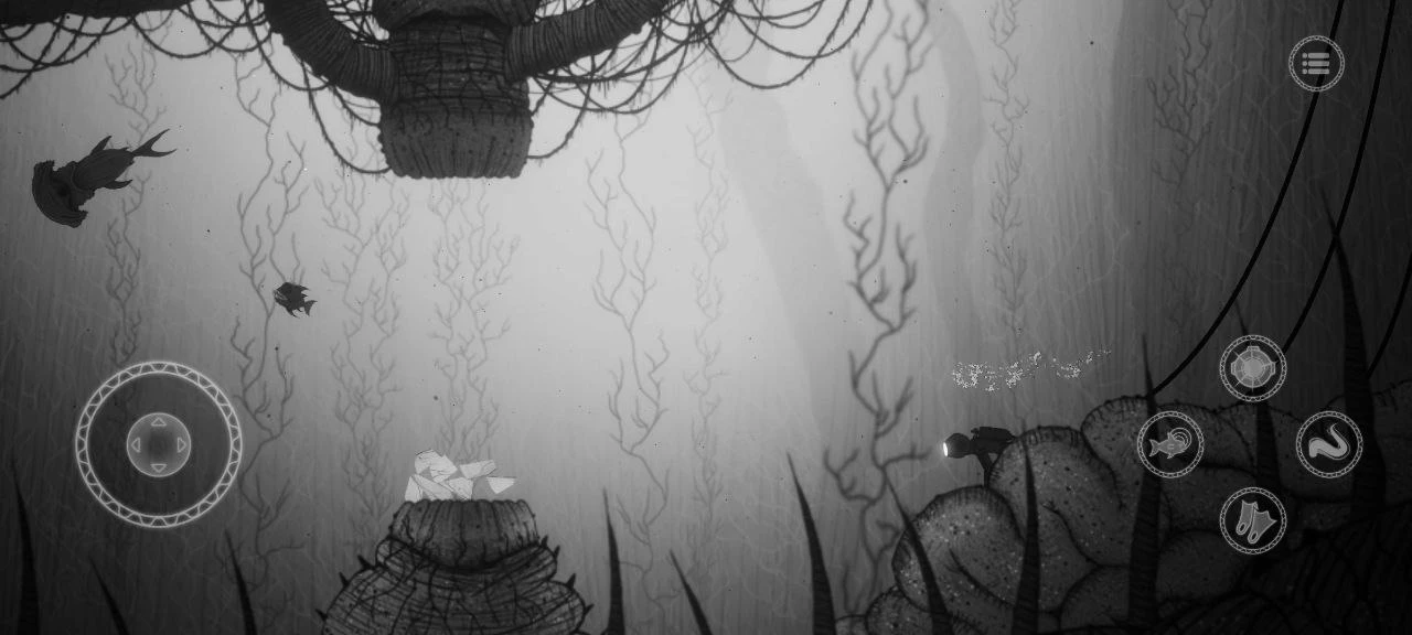 Проект привлекает чёрно-белой картинкой и видами огромных подземных монстров, которых представляешь, когда думаешь об обитателях морских глубин.