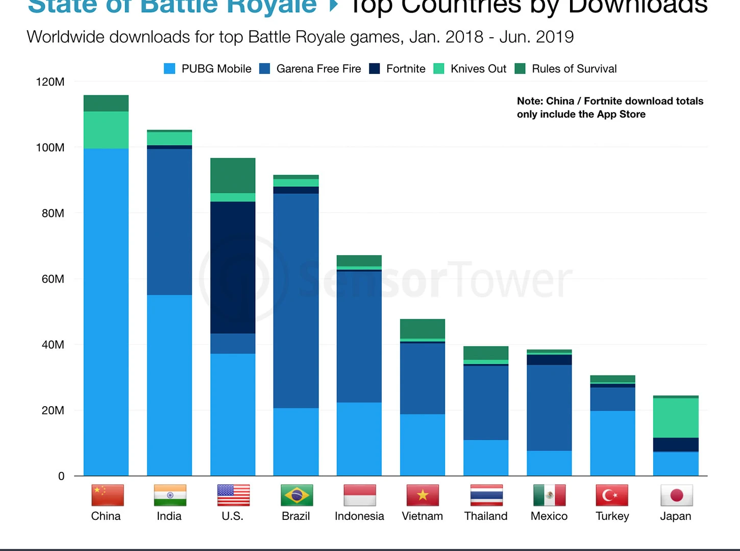 Значение PUBG Mobile включает китайскую Game for Peace, но это не сильно повлияло на результат.