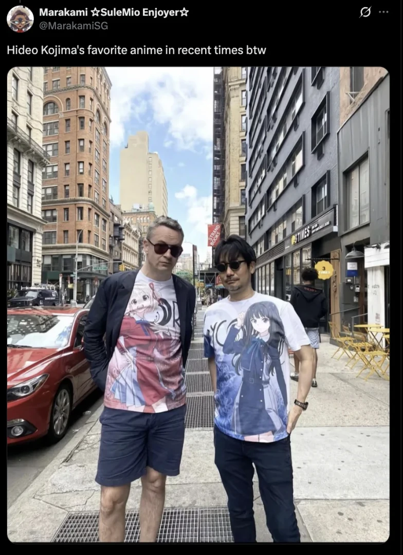 Хидео Кодзима славится своим киновкусом — он обожает смотреть нишевые и популярные фильмы, плюс вдохновляется ими при создании своих игр. В 2022 году Кодзима рассказал в своём профиле в X интересную историю — он искал фильм «Лакричная пицца», а вместо него наткнулся на аниме «Ликорис Рикойл» и посмотрел несколько его серий. После этого он стал фанатом франшизы.