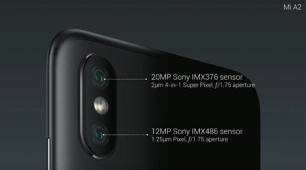 Система двойной камеры Xiaomi Mi A2 получила 20-мегапиксельную основную матрицу Sony IM376 с диафрагмой f / 1,75 и 2-микронную систему 4-in-1 Super Pixel для съемки более ярких снимков в условиях слабого освещения.