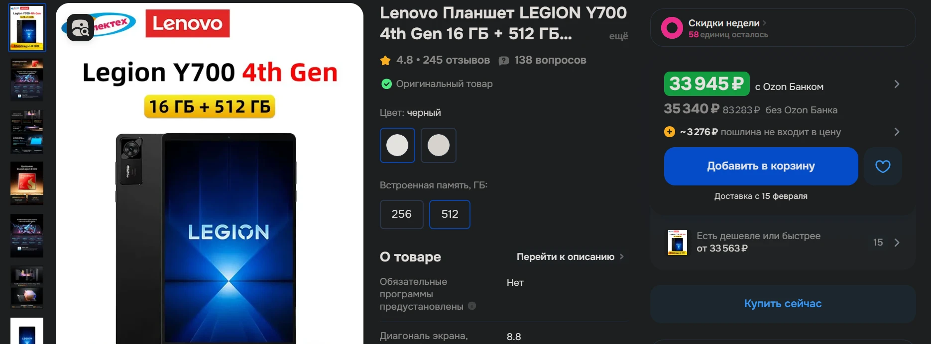 Также некоторые потенциальные покупатели планшета хотели бы увидеть в нём OLED-дисплей вместо LCD. Защитники LCD считают, что за более современный экран пришлось бы заплатить больше денег. Пока что линейка Y700 остаётся относительно бюджетной — 4-е поколение предлагают на OZON за 33 945 рублей без учёта пошлины.