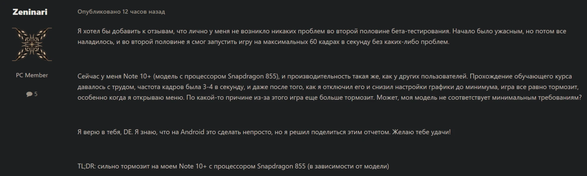 Релиз Warframe Mobile оказался шероховатым — форум игры полон сообщений о плохой оптимизации на совершенно разных устройствах: например, Xiaomi 10T Pro со Snapdragon 865 и 8 ГБ ОЗУ. Владелец этого смартфона даже записал видео, на котором видно, что ему приходится играть с 2-3 FPS.