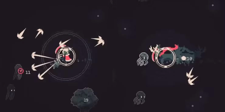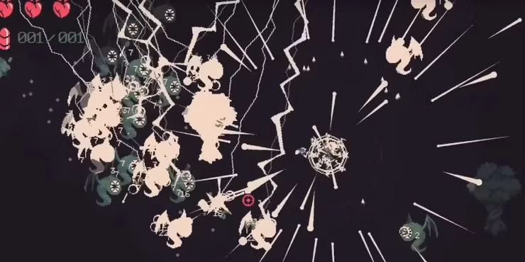 - Имплозия. Перед своим исчезновением чёрная дыра наносит всем окружающим монстрам урон от пуль.