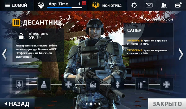 На старте ваш персонаж относится к классу Шурмовик, а затем, по мере накопления опыта и развития способностей, сможете перейти в разряд Десантников, Разведчиков или даже Снайперов. Поначалу вам будет доступно только простое оружие, а с ростом опыта вы не только откроете новые виды вооружений, но и улучшите имеющиеся путём модернизации различных их частей.