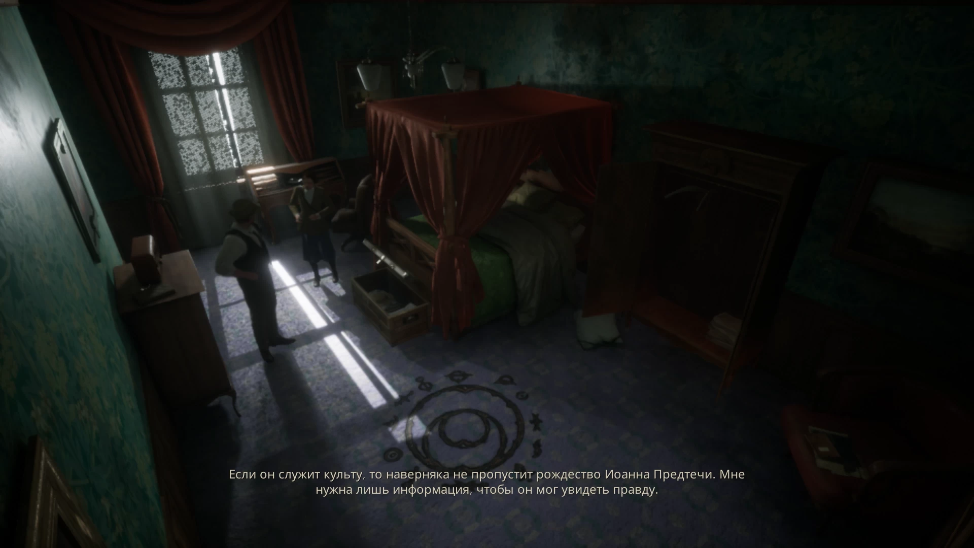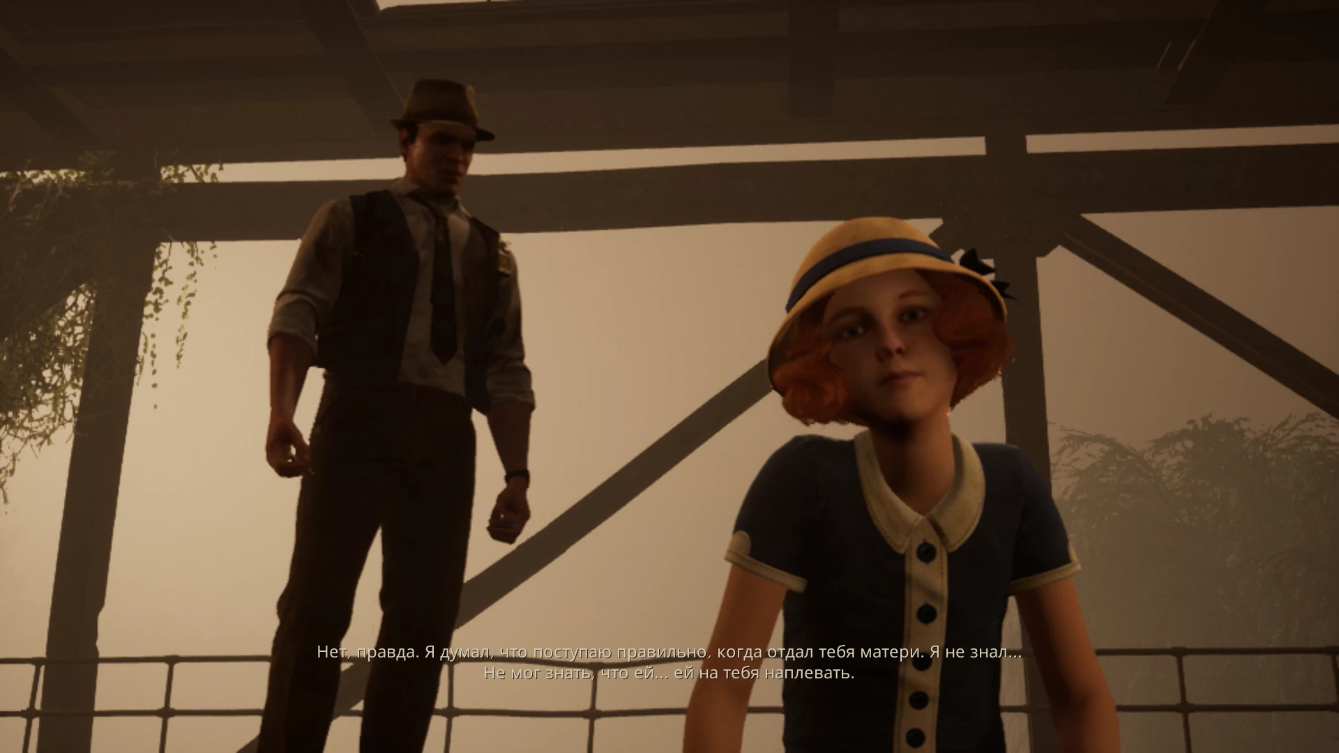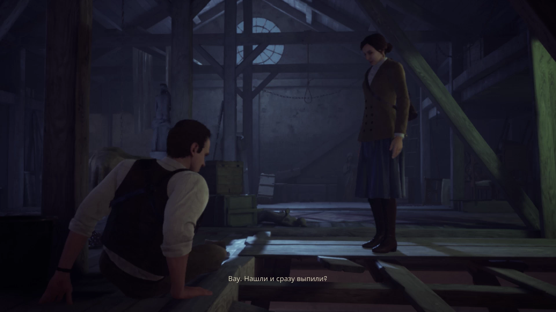 В Alone in the Dark часто будут встречаться кат-сцены на движке игры. В них персонажи ведут диалоги на английском, а снизу отображаются русские субтитры. Сразу скажу, что к переводу у меня претензий нет — только ближе к концу одна из записок была на английском языке.