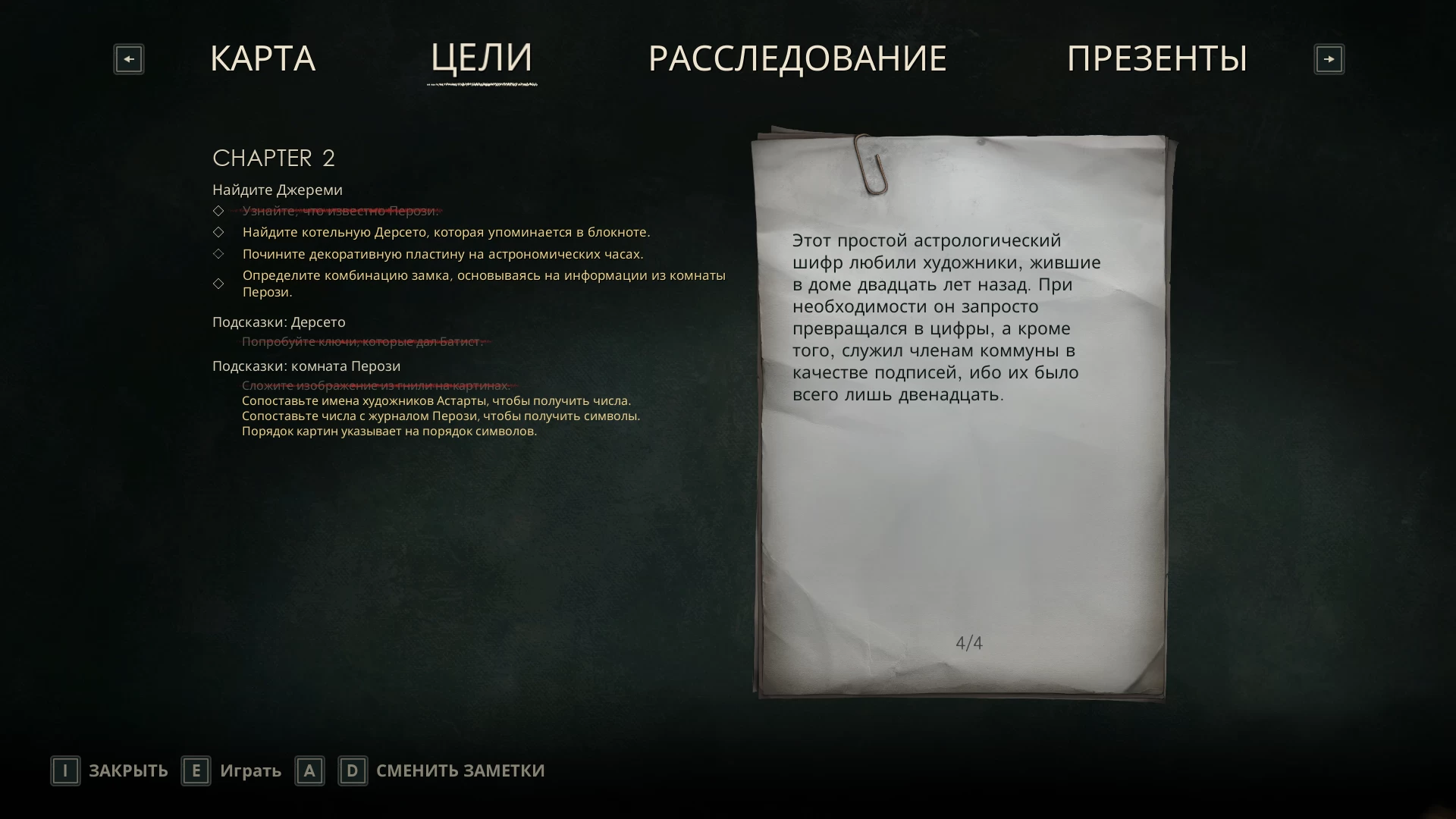 Радует, что в игру добавили подсказки в виде записей и дневников NPC. Порой ответ есть на рисунке или в виде выделенных ключевых слов в тексте. Также у игрока всегда есть чёткое понимание, что надо делать благодаря списку заданий и подсказкам.