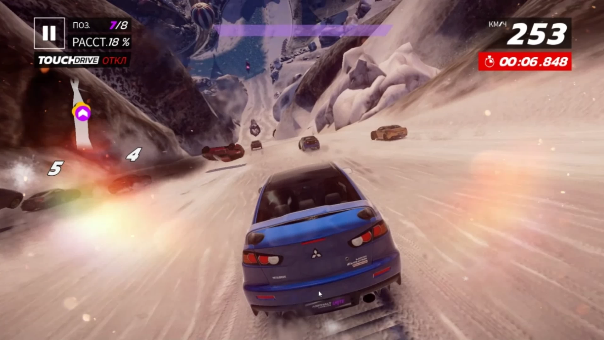 Но всё обошлось — в игре можно отключить опцию TouchDrive, потому что она не столько помогает, сколько мешает: я постоянно принимал решения в последний момент, когда моя тачка уже не могла повернуть на другую часть трека, врезаясь в стены и пропуская все «лакомые места» с нитро и прыжками.