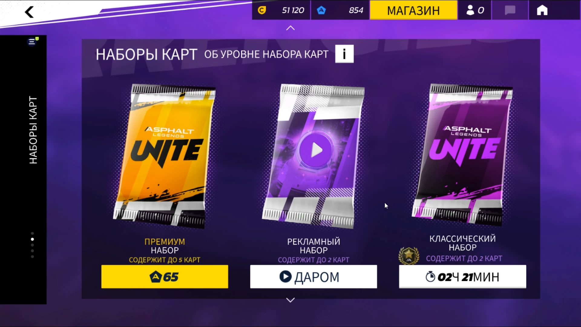Наборов карт 3: за премиальную валюту, за просмотр рекламы и бесплатно, но после определённого времени.