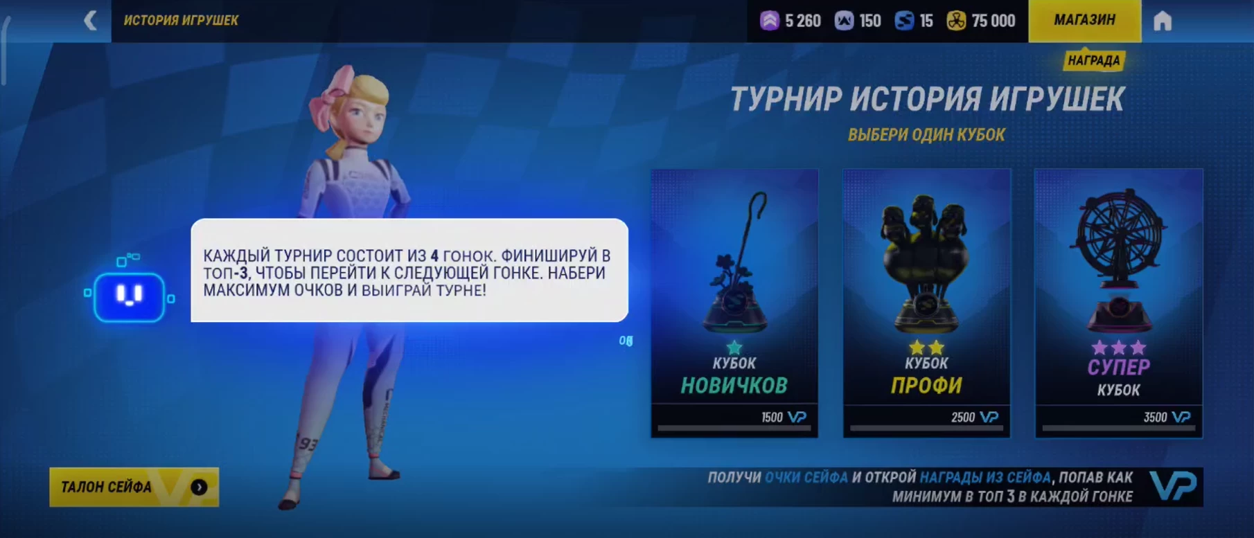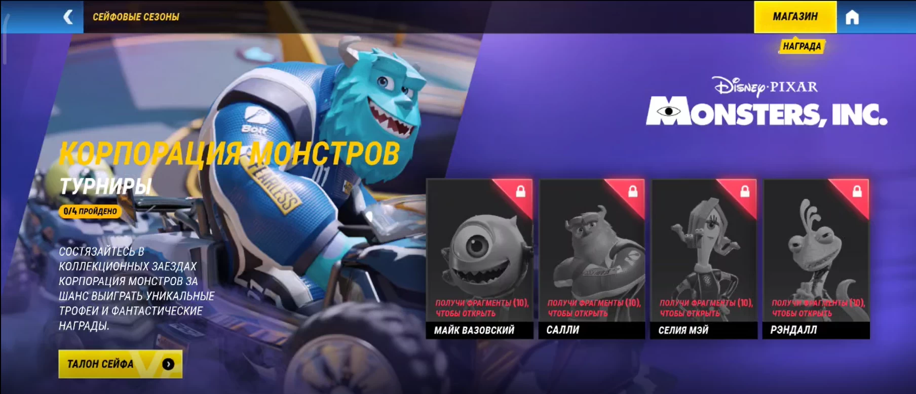 - PvE-турниры с разными кубками, связанные с конкретной мультвселенной Disney: Корпорация монстров, Книга джунглей и так далее.