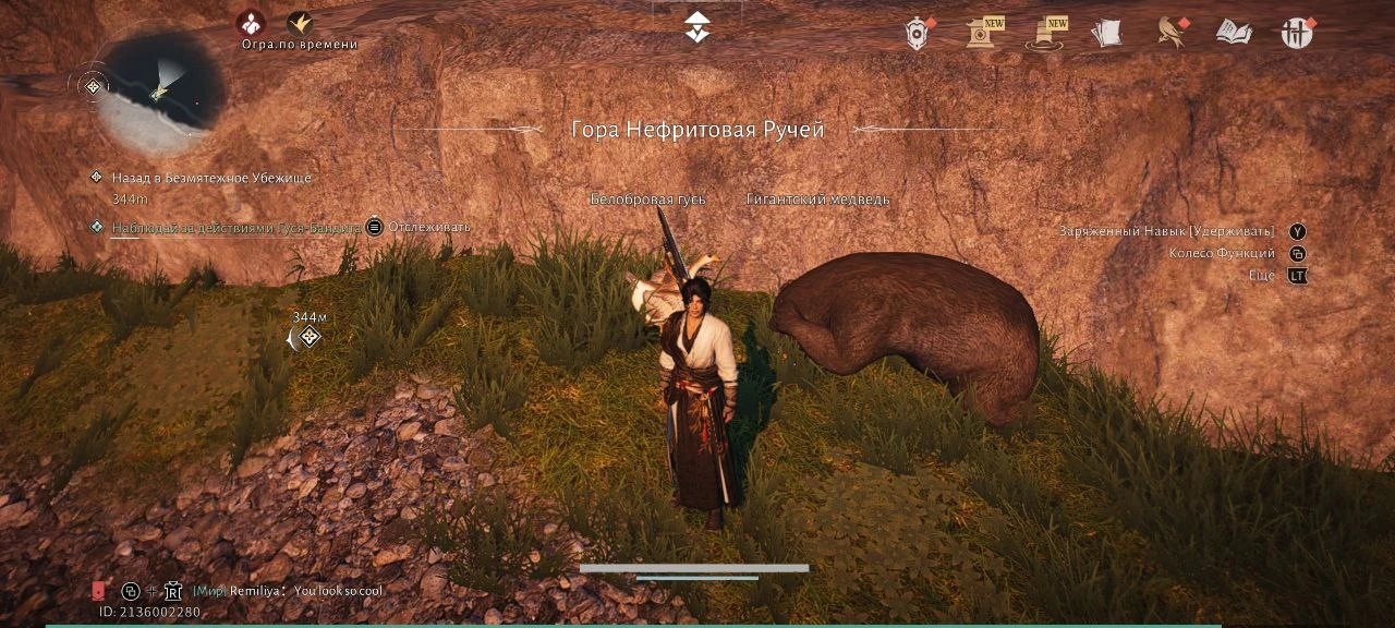 Where Winds Meet не боится показывать игроку забавные ситуации, связанные с животным миром. Например, вы можете заметить медведя, который лезет на дерево за пчелиным мёдом. Или гуся, который атакует медведя, сжавшегося от страха.