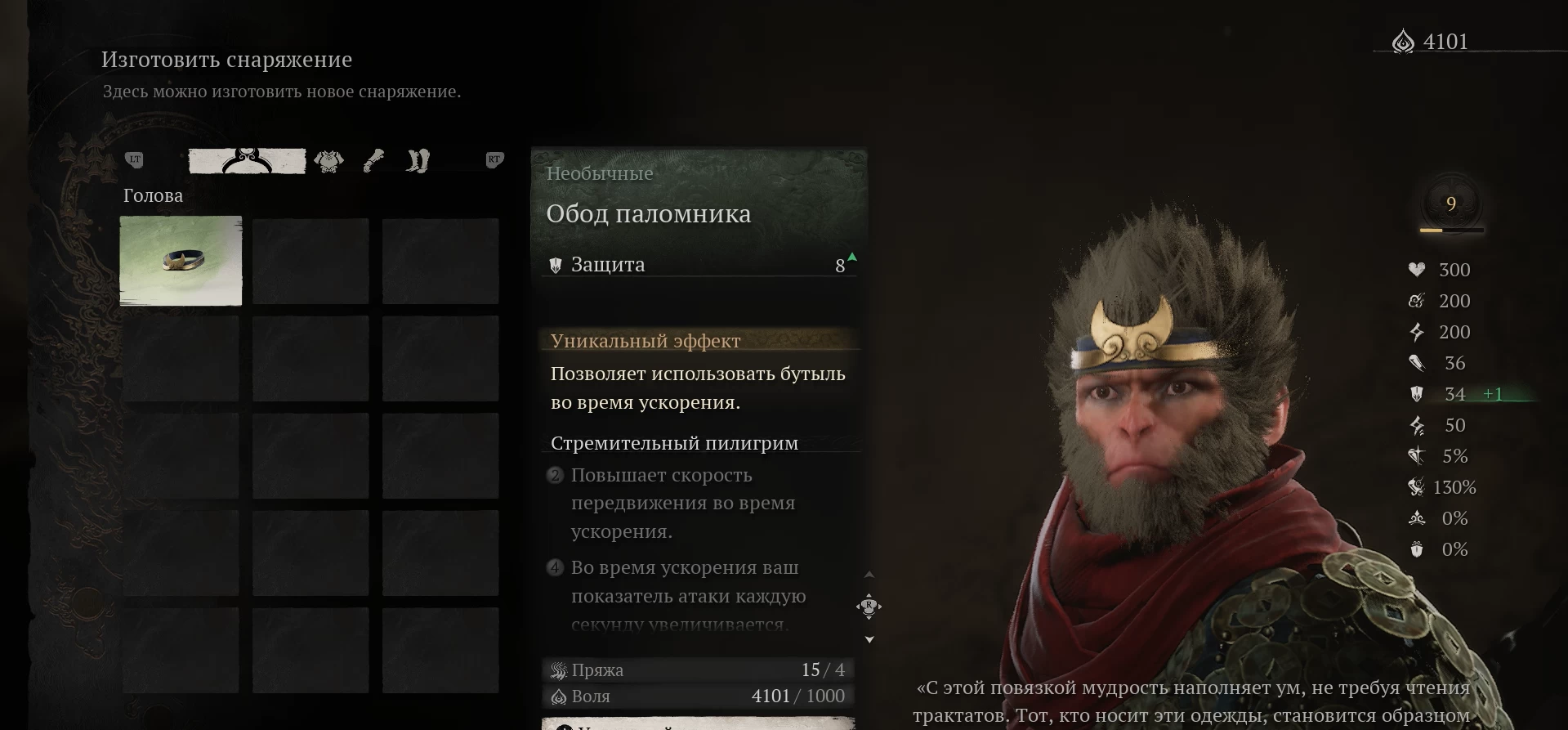 В Black Myth свободная боёвка, хотя можно зафиксировать камеру на враге и переключаться между группой соперников, так как они не будут дожидаться, пока вы дубасите их друга. А так как на старте наш персонаж очень слаб, то придётся умирать и возрождаться рядом с последней святыней. После смерти постоянные усиления (Искра) и предметы остаются невредимыми, поэтому остаётся фармить локацию до тех пор, пока персонаж не будет готов к схватке со следующим боссом.