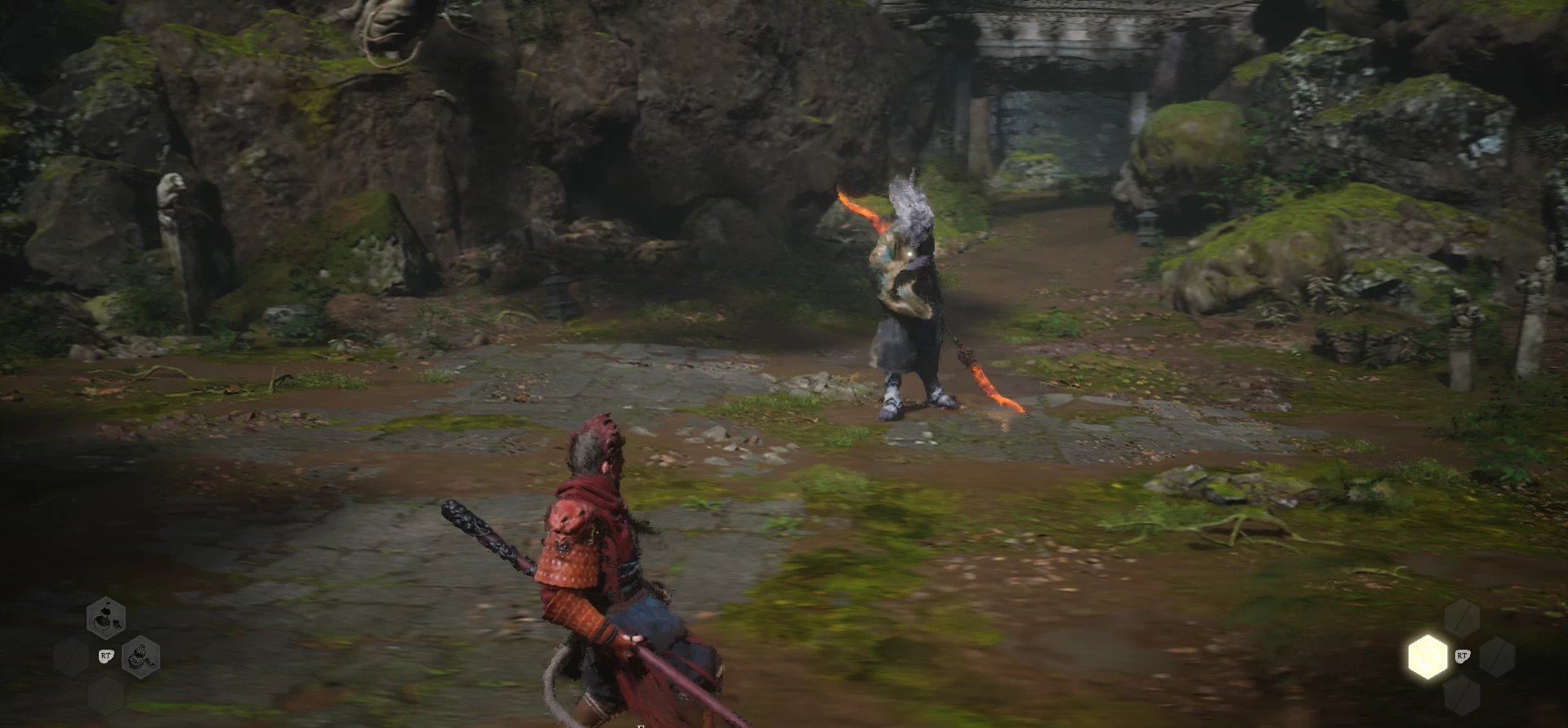 Хотя Black Myth: Wukong и приписывают к играм наподобие Dark Souls, на самом деле Wukong более щадящая. Дело в том, что геймплей в ней разделён на 2 части — зачистка локации от мобов, использование святыни и битва с боссом. И если в настоящих соулслайках настоящее испытание кроется в несчастных случаях и нечестных лучниках на возвышенности, то в Wukong этап с мобами это скорее расслабление, возможность испытать новые движения или заклинания.