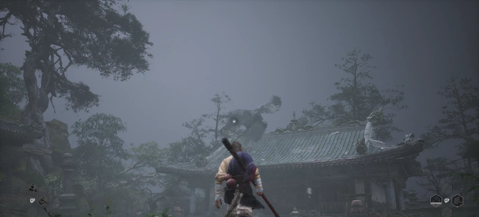 Боссы также не представляют особой опасности — геймерам, далёким от Dark Souls, потребуется максимум 5 смертей, чтобы понять мувсет и превратить сражение с очередным главгадом в этакий «дзен-танец». А так как экипировка в Wukong несёт в себе незначительные улучшения, достичь каких-то «читерских билдов» не получится. Тем более, что Укун использует только посох — это его единственное оружие, что верно классическому китайскому произведению «Путешествие на Запад». Но даже такое однообразие пушек предлагает некую вариативность — вы не просто вливаете во врагов максимальный урон, а меняете стойки, вместе с которыми меняется мощная атака. Например, Укун может запрыгнуть на палку и удлинить её, чтобы его никто не достал и не наносил ему урон.