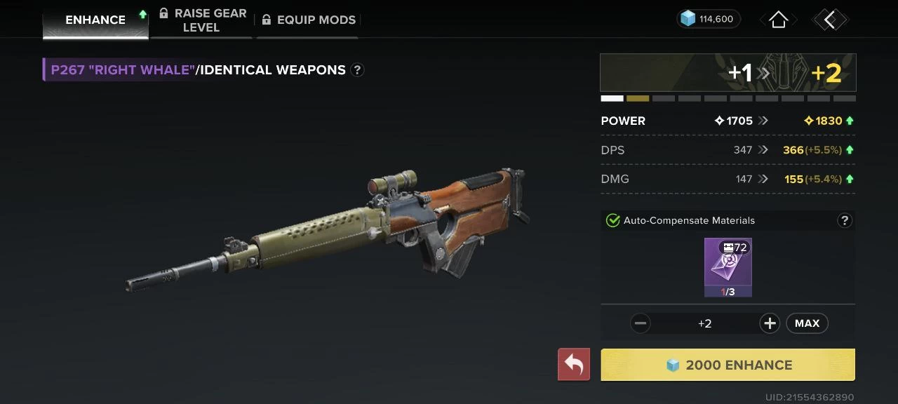 Прокачивать персонажа можно несколькими способами: давать ему оружие высокого уровня, улучшать это оружие с помощью специальных материалов, улучшать навыки и открывать ветку талантов с помощью копий. У оружий есть лимит в зависимости от уровня вашего аккаунта. Также по мере открытия нового контента вы сможете вставлять в оружие модификации. Пушки различаются по уровню редкости — синие лучше вообще не трогать, потому что очень скоро вы замените их на фиолетовые, а потом на оранжевые и золотые.