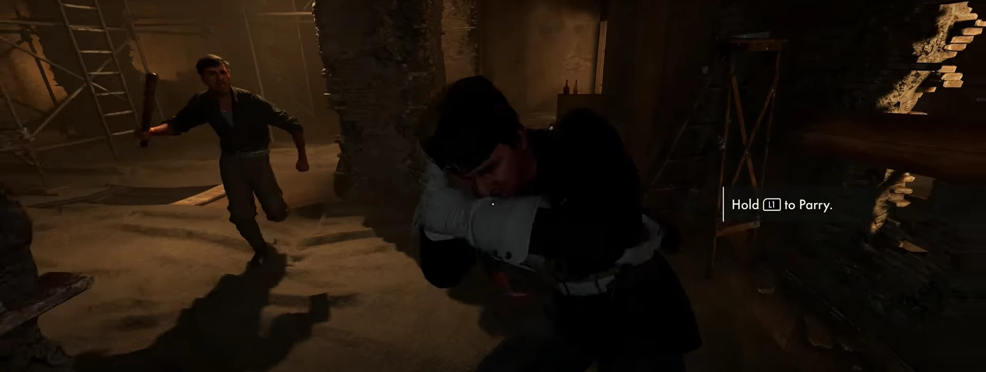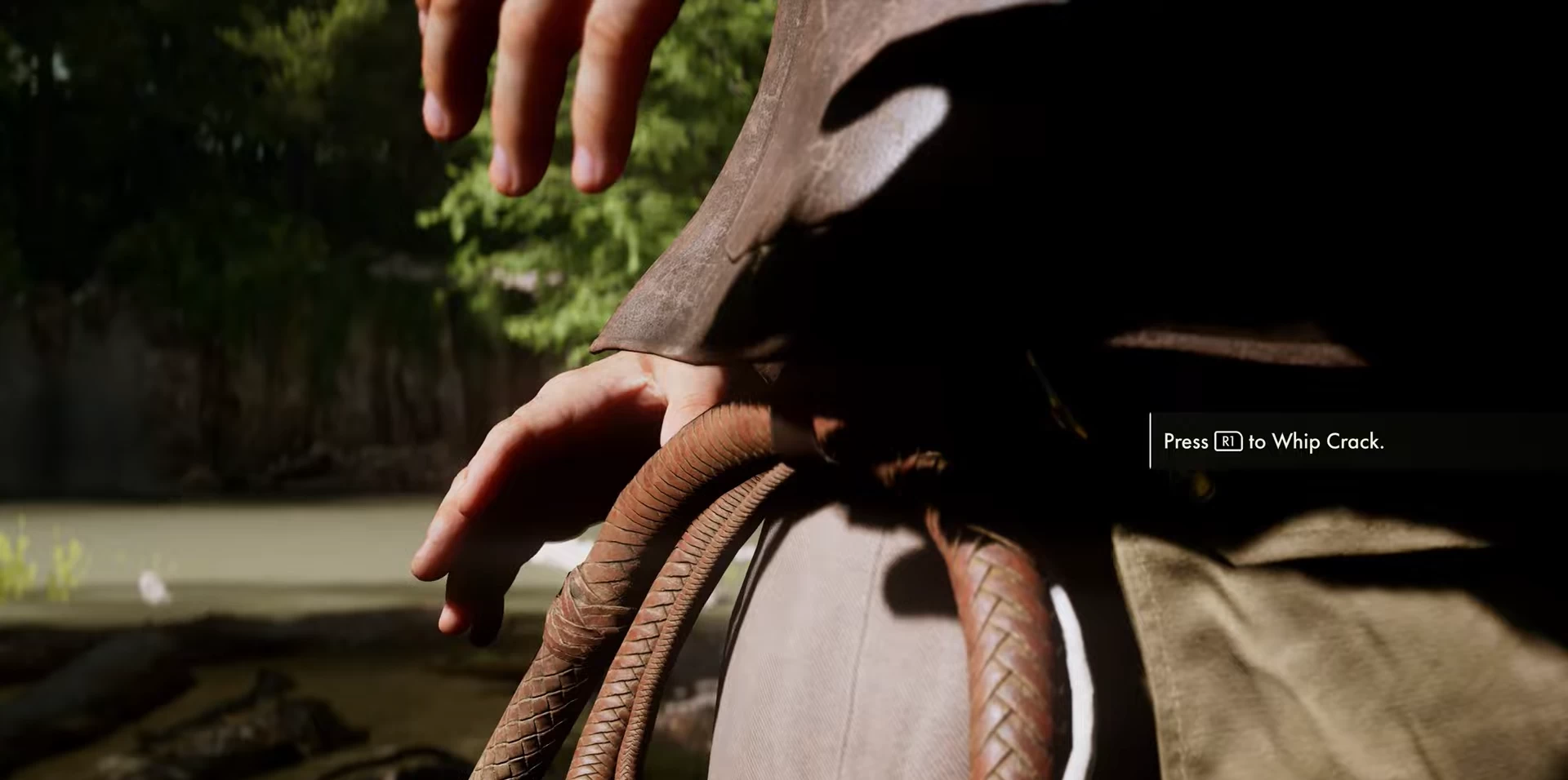 Первое QTE-столкновение с врагом происходит спустя 5 минут после начала. Инди искусно использует хлыст, чтобы сбить заряженный и направленный на него револьвер из рук одного из проводников. Но хлыст это не просто разновидность оружия — его также можно использовать, чтобы стряхивать с себя и других персонажей ядовитых пауков, которые водятся в тёмных подземельях. Ещё хлыст помогает при перелёте через обрывы — цепляетесь за крепкую структуру и раскачиваетесь.