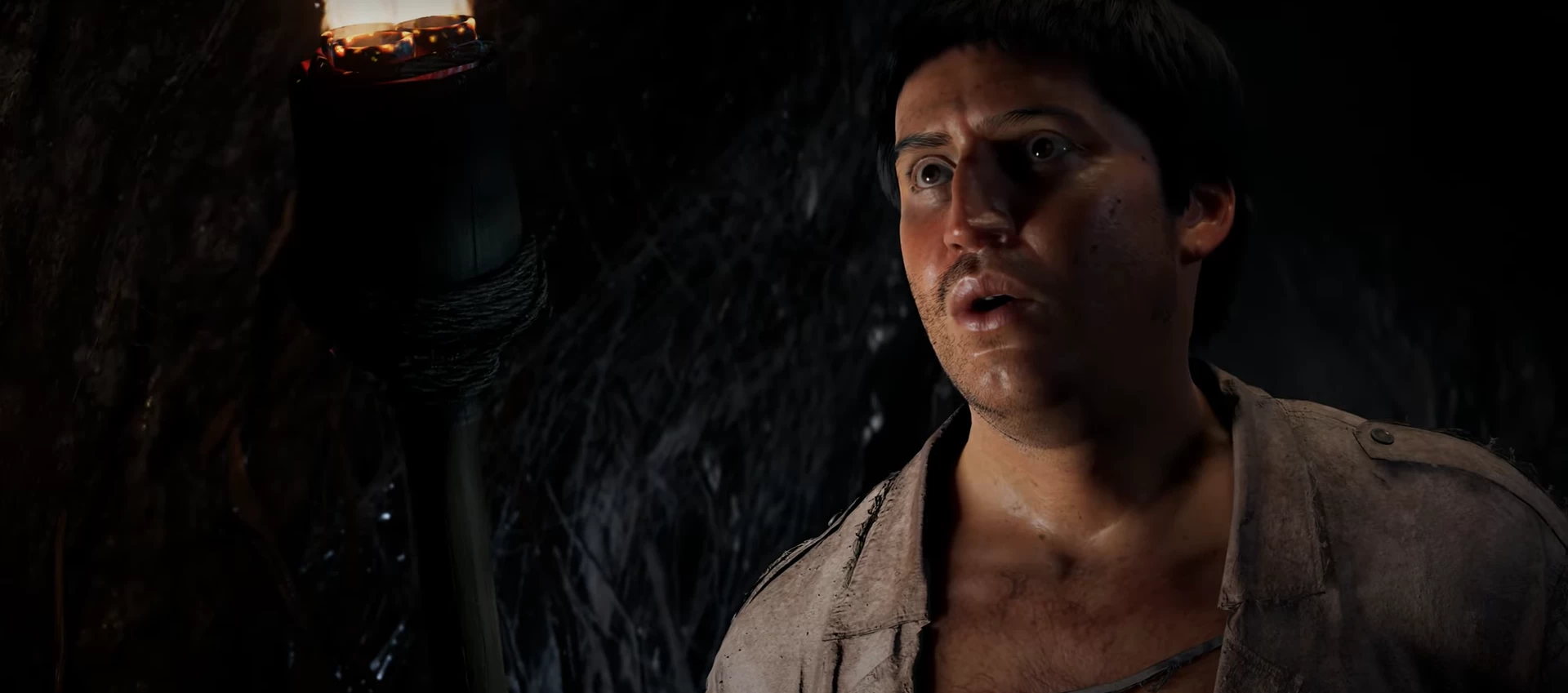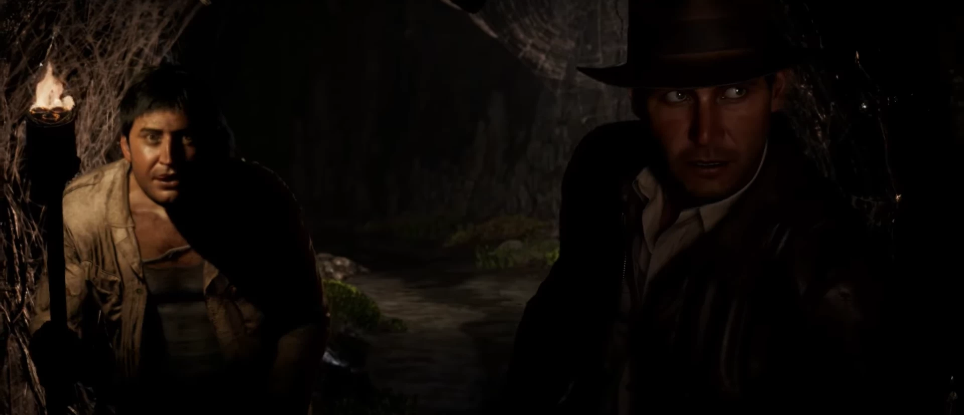 Вступление в The Great Circle заскриптованное, с большим количеством кат-сцен и QTE-ивентов. Но это можно простить из-за сцены с песчаным мешочком и золотого артефакта, после чего Инди удирает со всех ног из подземелья.