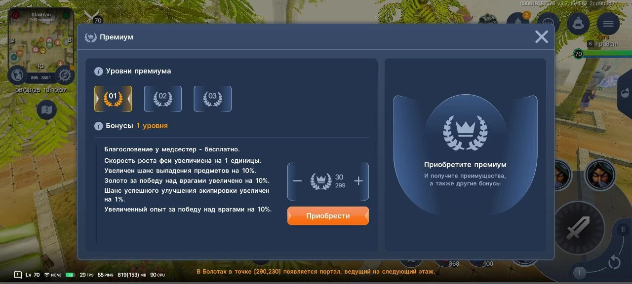 - Болота для персонажей 55+ уровня — мрачные джунгли, где легко заблудиться. Локация огромная — два уровня. Игроки начинают на уровне болот, а через 10 минут открывается портал ко второму, где уже ждёт главный босс — Повелитель болот. Добраться до него непросто, но награда стоит того. Здесь идут битвы и с врагами, и с самой локацией.