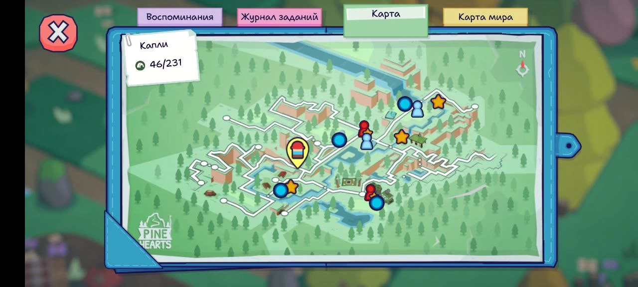 На этом моменте вы можете подумать, что Pine Hearts — очередная «слезливая» игра с грустным сюжетом, внутренними переживаниями ГГ и тяжёлой атмосферой. На самом деле вы отправитесь в одно из самых незабываемых приключений в своей жизни, где вас ждут много людей, которые могут помочь вам, а вы — им.