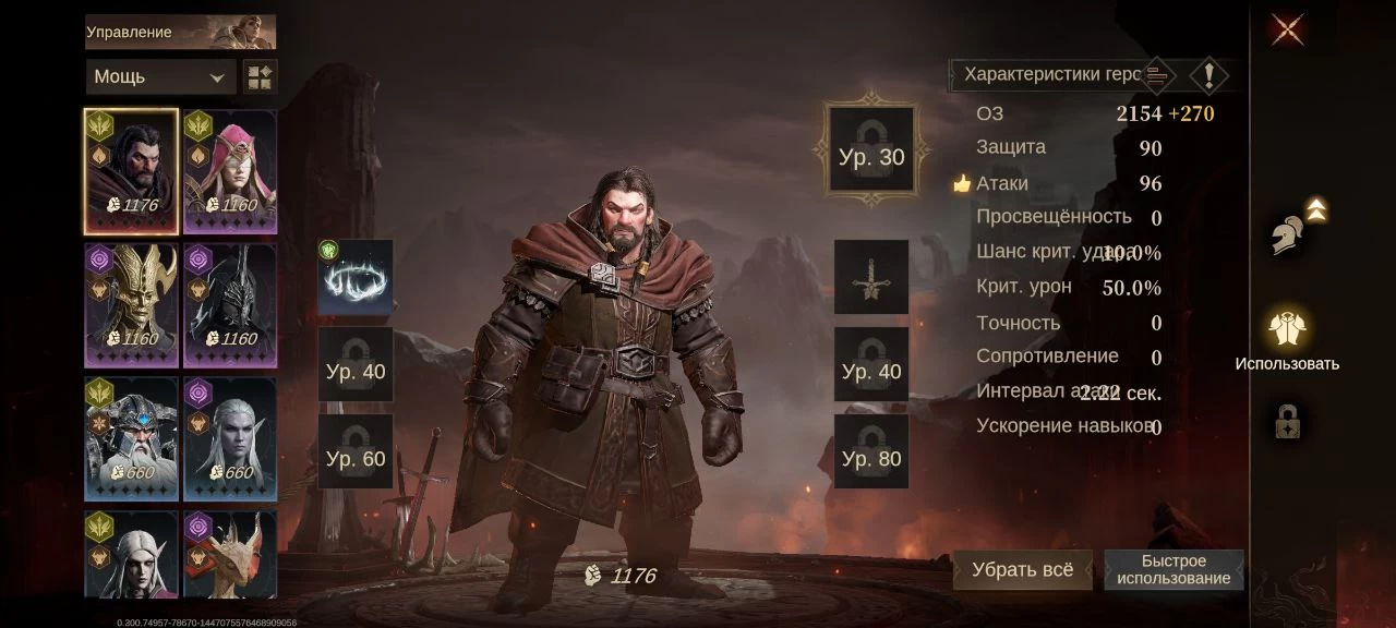 Помимо прокачки общего уровня героев нужно выбивать для них экипировку и затачивать её. Всё это снова делается одним кликом, есть кнопка «авто-подбор».