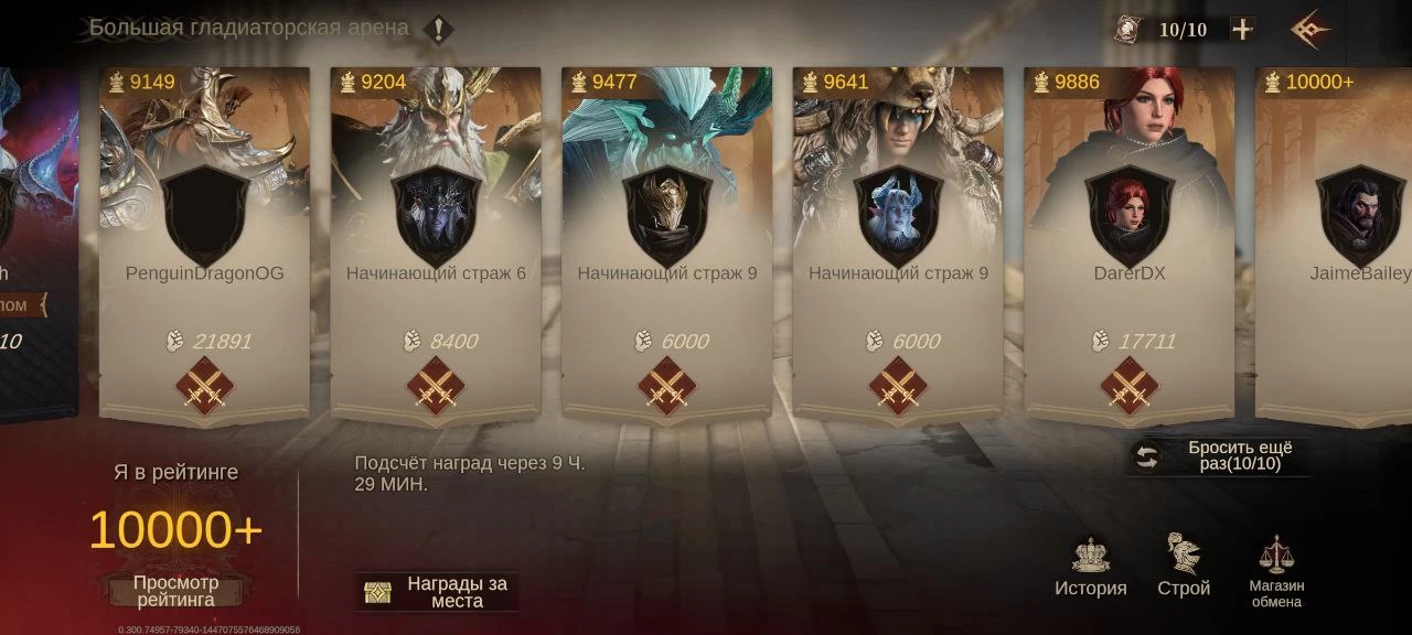 PvP проходит на арене и представляет собой типичный авто-баттлер с принудительным авто-режимом. Время на матчмейкинг не тратится. За победы вы повышаете свой рейтинг, а в начале сражаетесь с ботами. Я не совсем понимаю местную систему — топ-1 удерживает игрок с 25 164 силами. Это очень мало — у топ-3 132 000 силы. За хорошие результаты вы получаете валюту, которую можно потратить в специальном магазине.