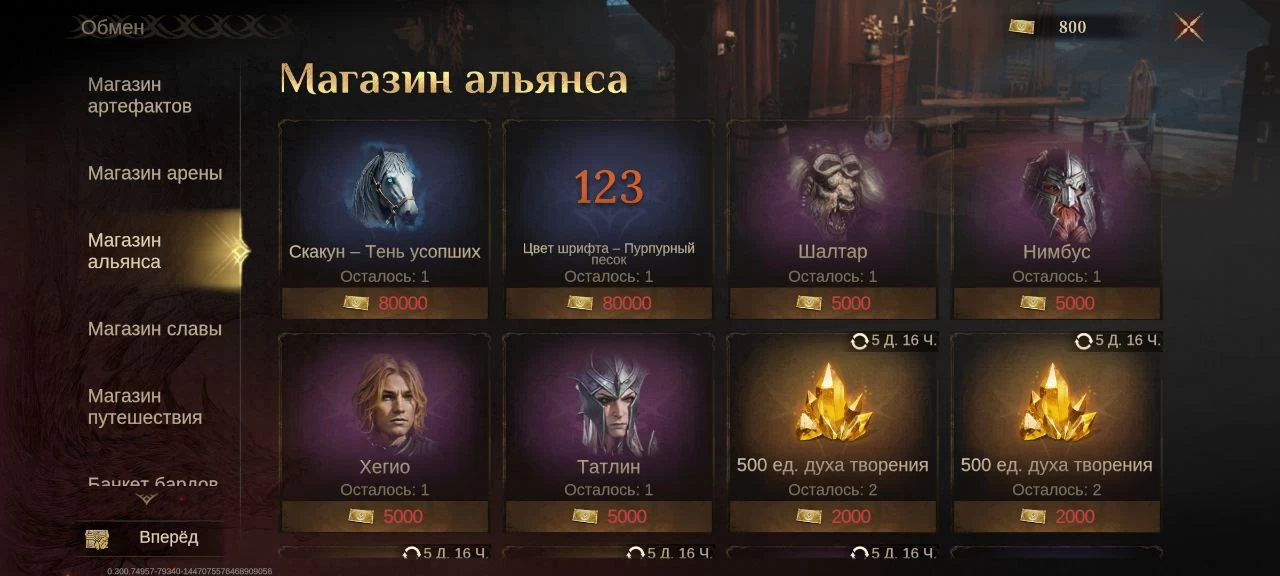 В конце обзора я решил затронуть альянсы, так как они открываются позже. Ничего особенного в этом режиме нет — подаёте заявку, вас принимают, дальше жертвуете материалы и выполняете ежедневные поручения, чтобы получать особые билеты, которые можно потратить на фиолетовых героев, скакуна и цвет шрифта. Зачем всё это нужно, я не представляю.